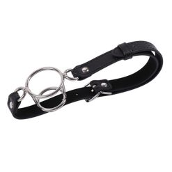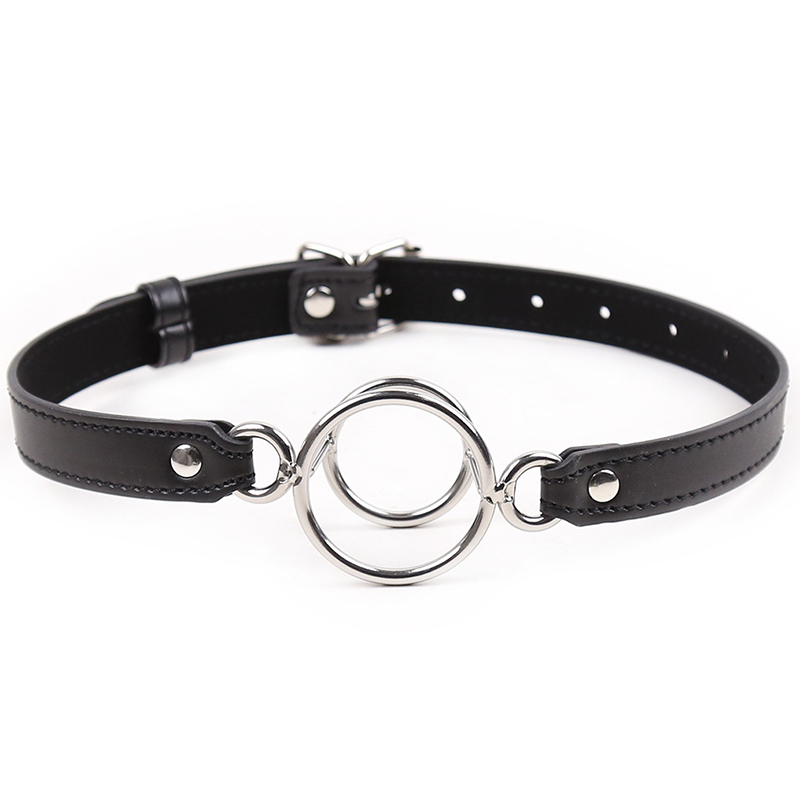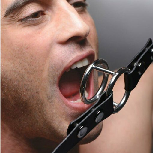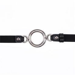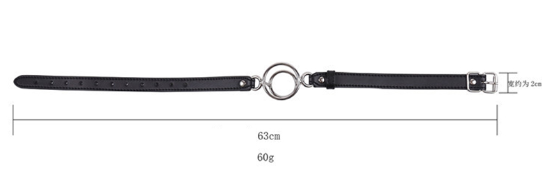 Mordaça de couro com armação metálica redonda. Tamanho regulável por fivela. A boca será suprimida e vai permitir a passagem do que couber através do aro e dos lábios abertos, permitindo manter o que estiver inserido na boca sem a possibilidade de remover. Mordaça possui taxas de metal para prender as tiras de couro de maneira forte e confiável. Grossos e resistentes.