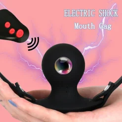 Mordaça Choque Elétrico Electric Shock Ball Gag: Desperte novas experiências e submeta-se a um jogo intenso de dominação com esta mordaça exclusiva que possui uma bola de silicone projetada para provocar salivação e garantir que cada som seja abafado, mantendo o submisso no papel perfeito. O design inclui tiras de couro com argolas em “D”, permitindo a adição de uma guia ou outros acessórios de fixação. Para um controle total, o fecho ajustável nas costas inclui uma fivela com travamento, enquanto o choque elétrico controlado remotamente aumenta o estímulo.
