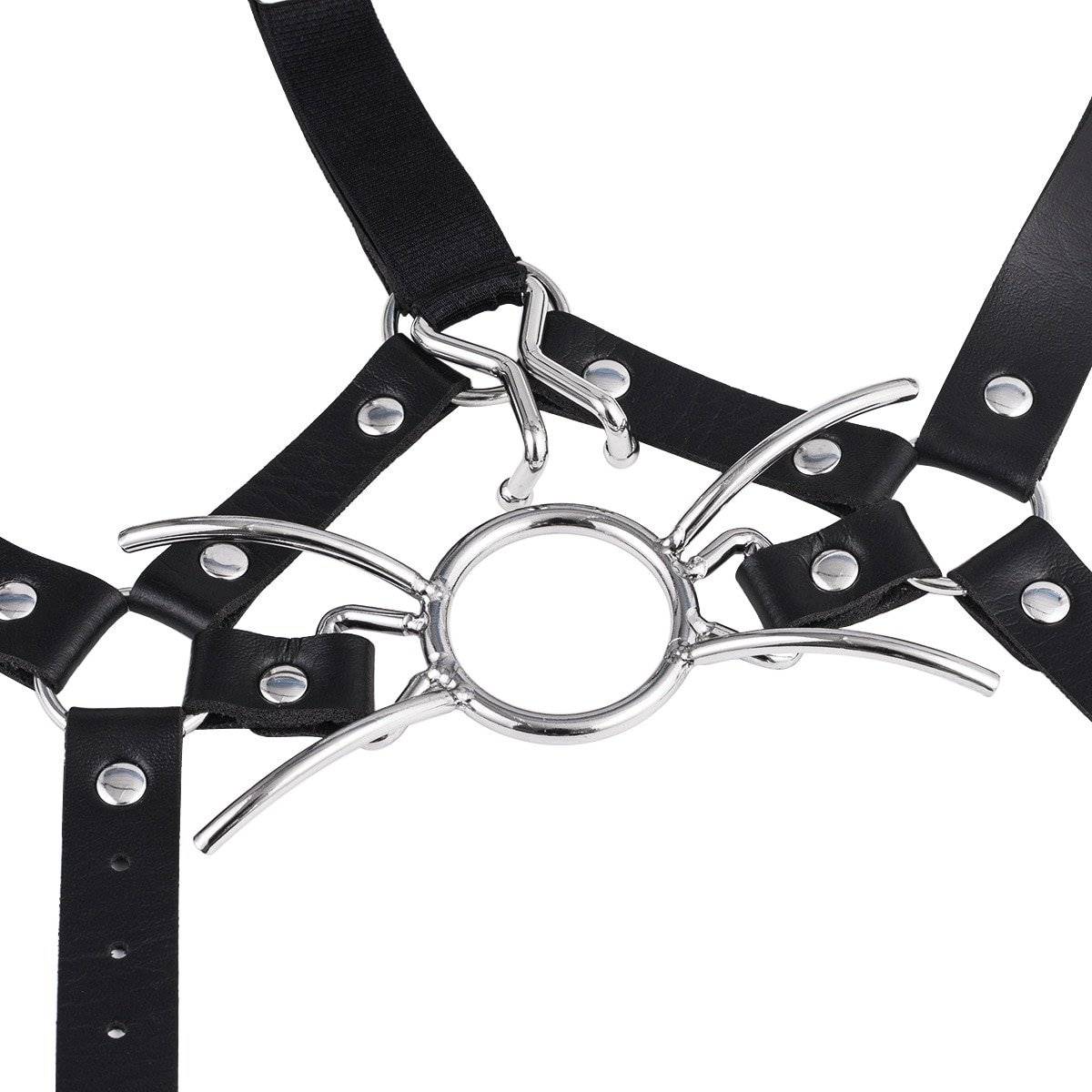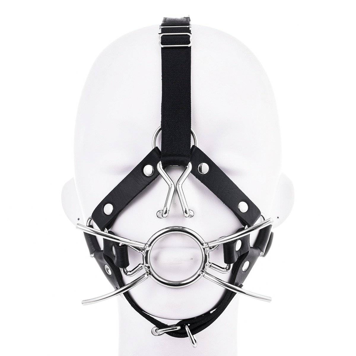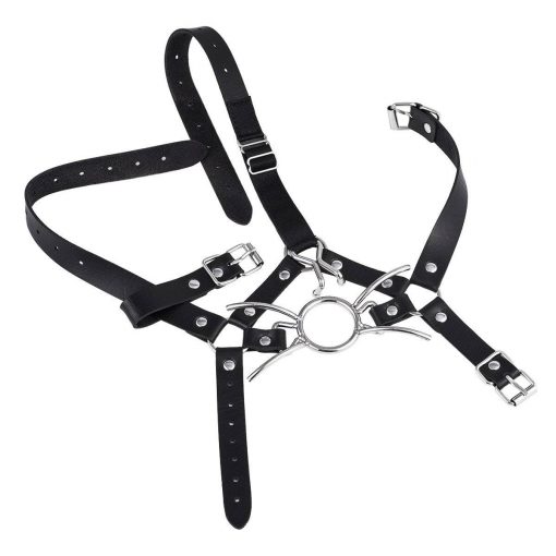 Mordaça harness com argola para boca spider gag e ganchos nasais