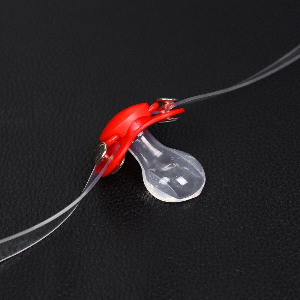 - Mordaça de chupeta feita em silicone de qualidade, não tóxico