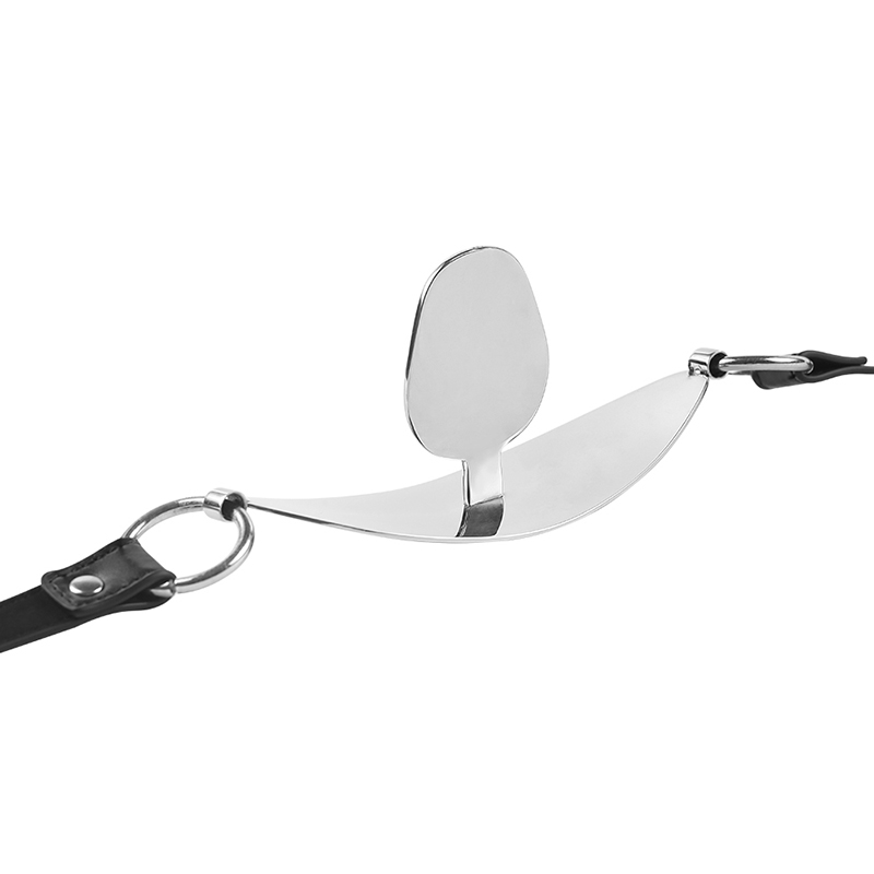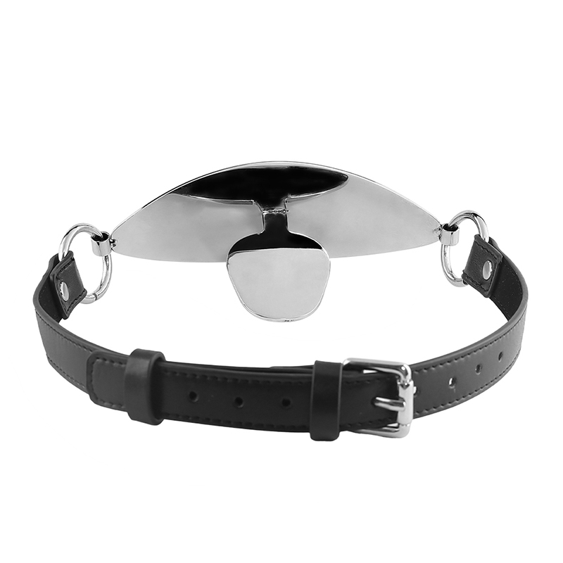 As vezes, palavras não podem (e não DEVEM) expressar a qualidade do prazer e da submissão aplicadas. Silencie as palavras do seu par e ouça apenas seus gemidos de prazer mais singelos. Se fizer do jeito certo, sempre pedirá mais. Ótimo produto para fetiches e fantasias BDSM e de dominação. Com a beleza do metal prateado e polido e das tiras negras de couro. De tirar as palavras da boca (literalmente).