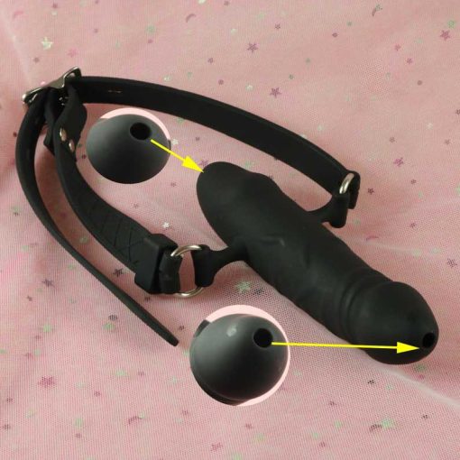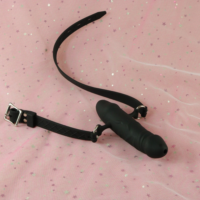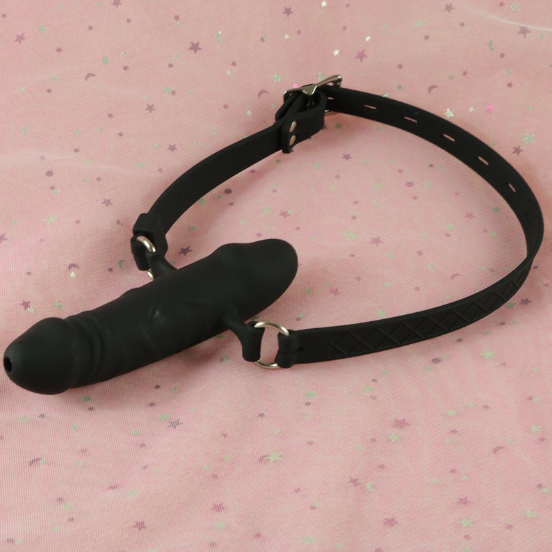 Mordaça pênis gag plug com furo. Sexo oral de uma forma diferente.