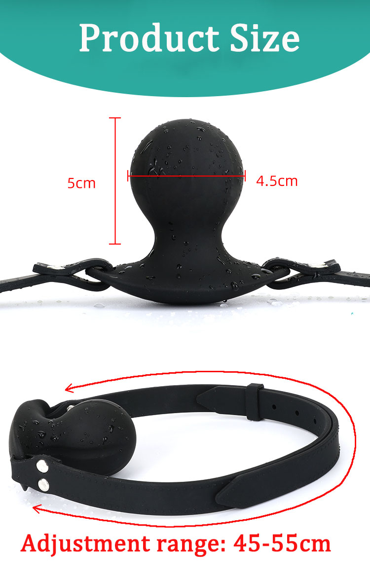 Mordaça com bola de silicone condutivo enriquecido com silício. Seu colar é feito em silicone de dureza média. Possui uma grande variedade de furações para servir em qualquer tamanho. São de 45 cm a 55 cm de circunferência.