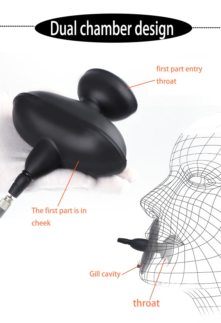 Mordaça inflável de silicone para mandíbula e lábios.