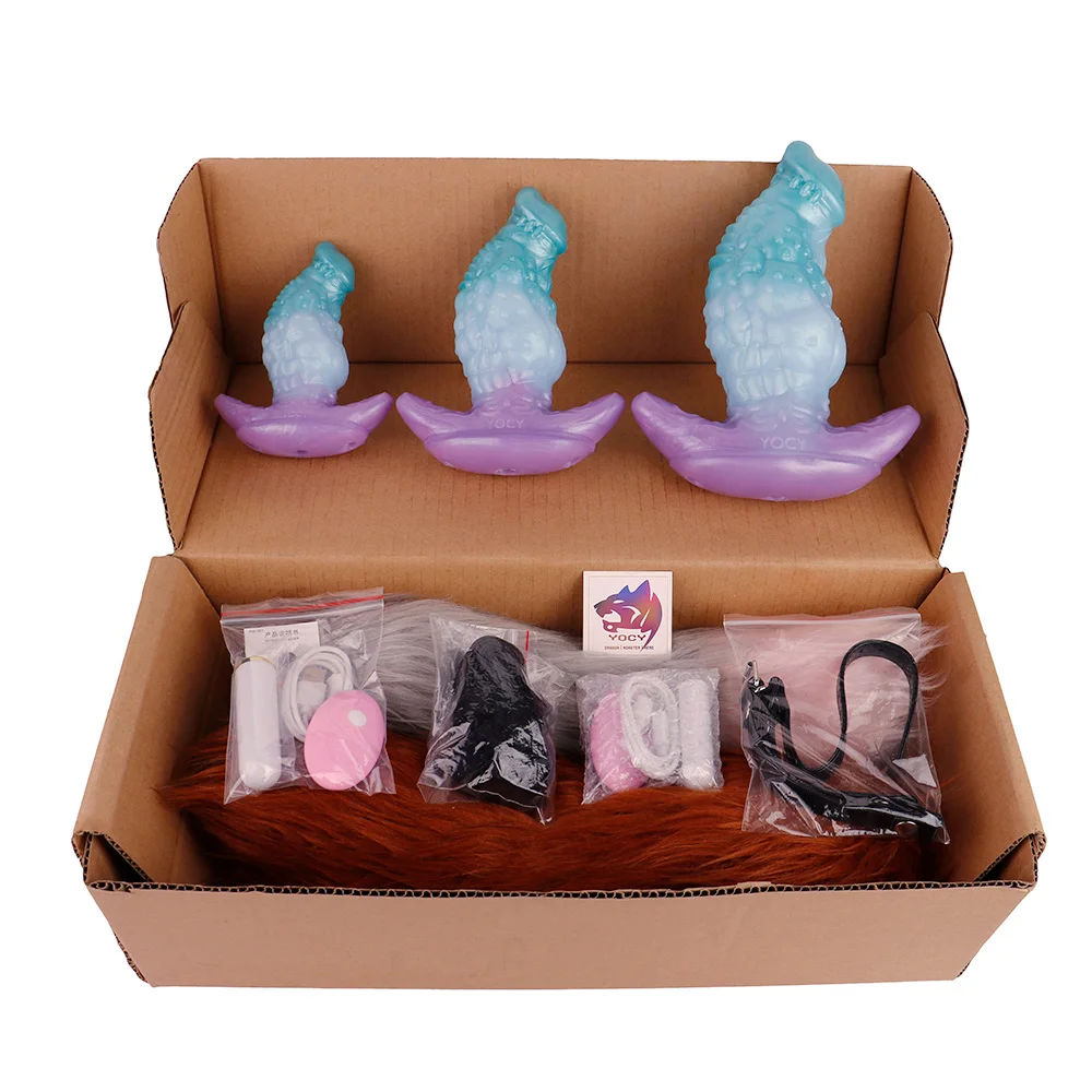 FAAK Silicone Wearable Butt Plug with Large Tail size S M L Wireless Control Vibrator Fantasy Anal Plug Mouth Gag Adult Toys