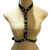 - Arnês estilo cinto completo de couro cruzado com cinta liga e elos de metal