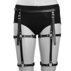 Arnês Cinto com Cinta Liga de Couro Garter Belt Design Sexy Perneira Dupla