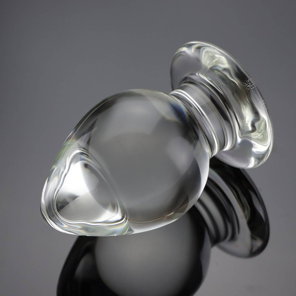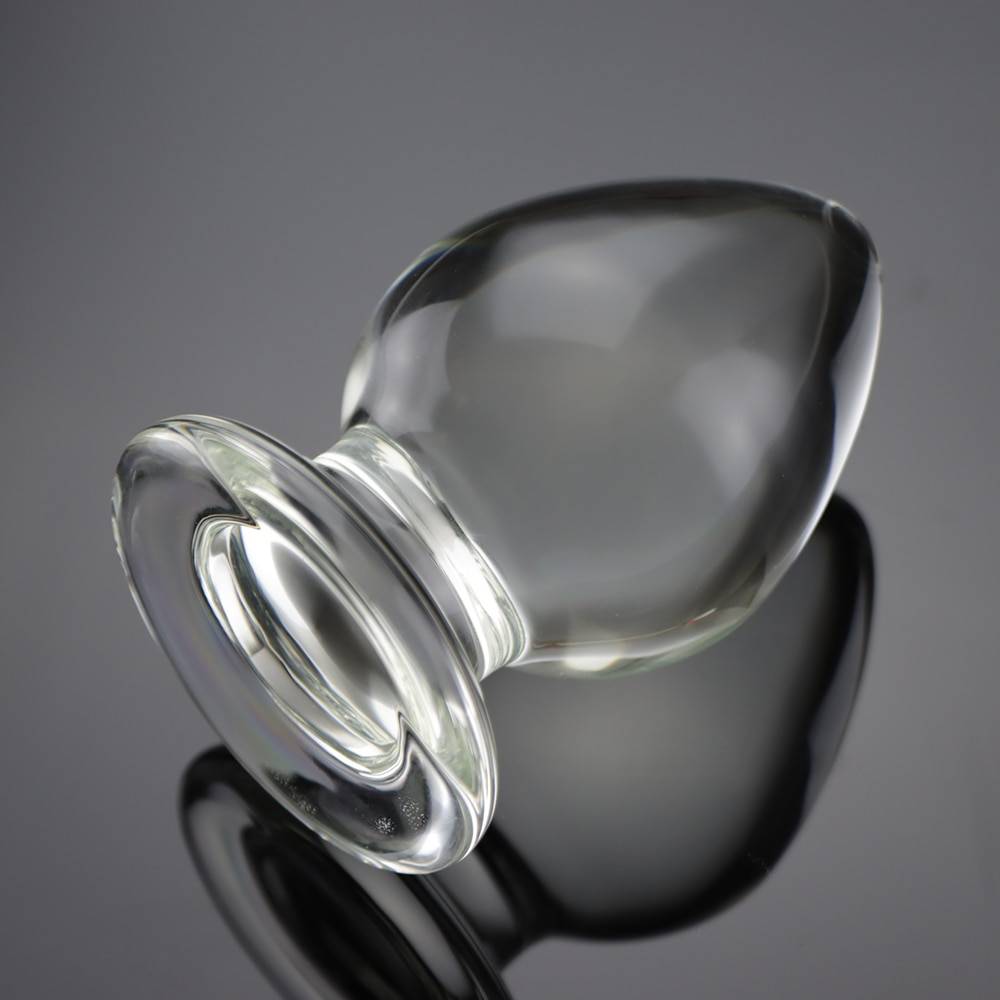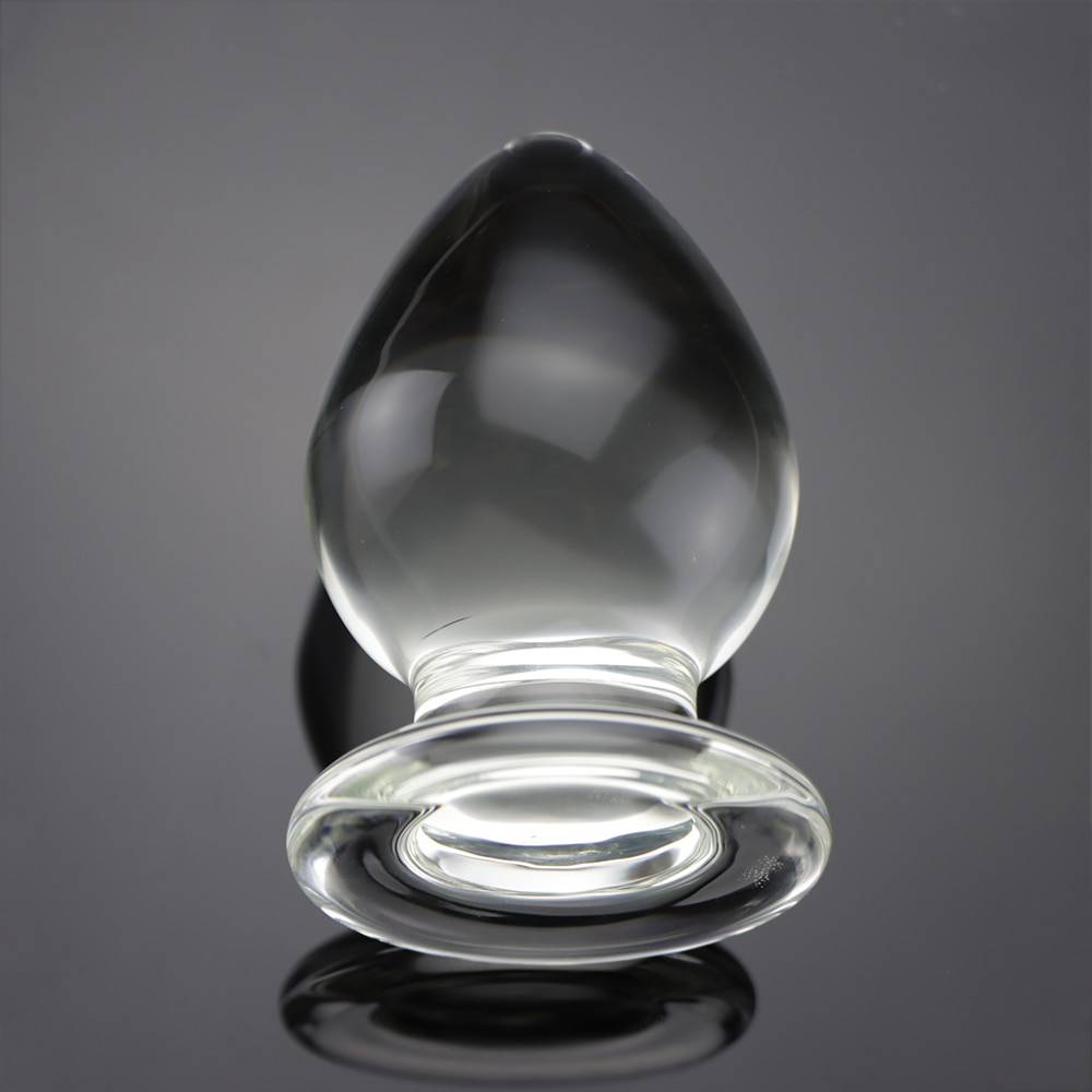 Plug anal pequeno e grosso Pyrex Glass. Feito em vidro de borossilicato transparente.