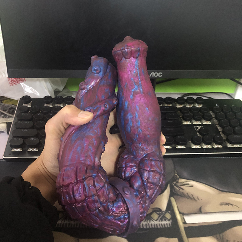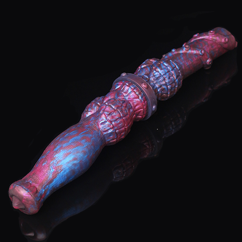 Modelo que possui texturas diferentes em cada ponta. Feitos com silicone flexível, macio e resistente a lubrificantes corporais. Os formatos são grossos, ondulados e com texturas provocantes nas bases. 21,5 cm são suficientes para vocês? As texturas diferentes também podem ser utilizadas por você, acompanhado ou não. Se estiver sozinha, masturbe-se e varie os lados para seu prazer particular.