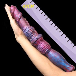 O modelo tem tamanho de 43 cm de cumprimento total. Tamanhos médios e que certamente vão agradar a você e ao seu par. As grossuras também agradam, iniciando em de 3,5 cm e vão até 6,2 cm de diâmetro para o lado mais grosso e liso. O lado com espiral de ventosas tem 5 cm até 6 cm de diâmetro.