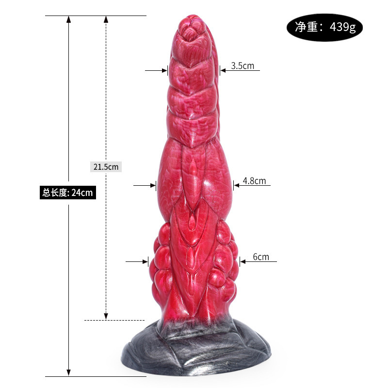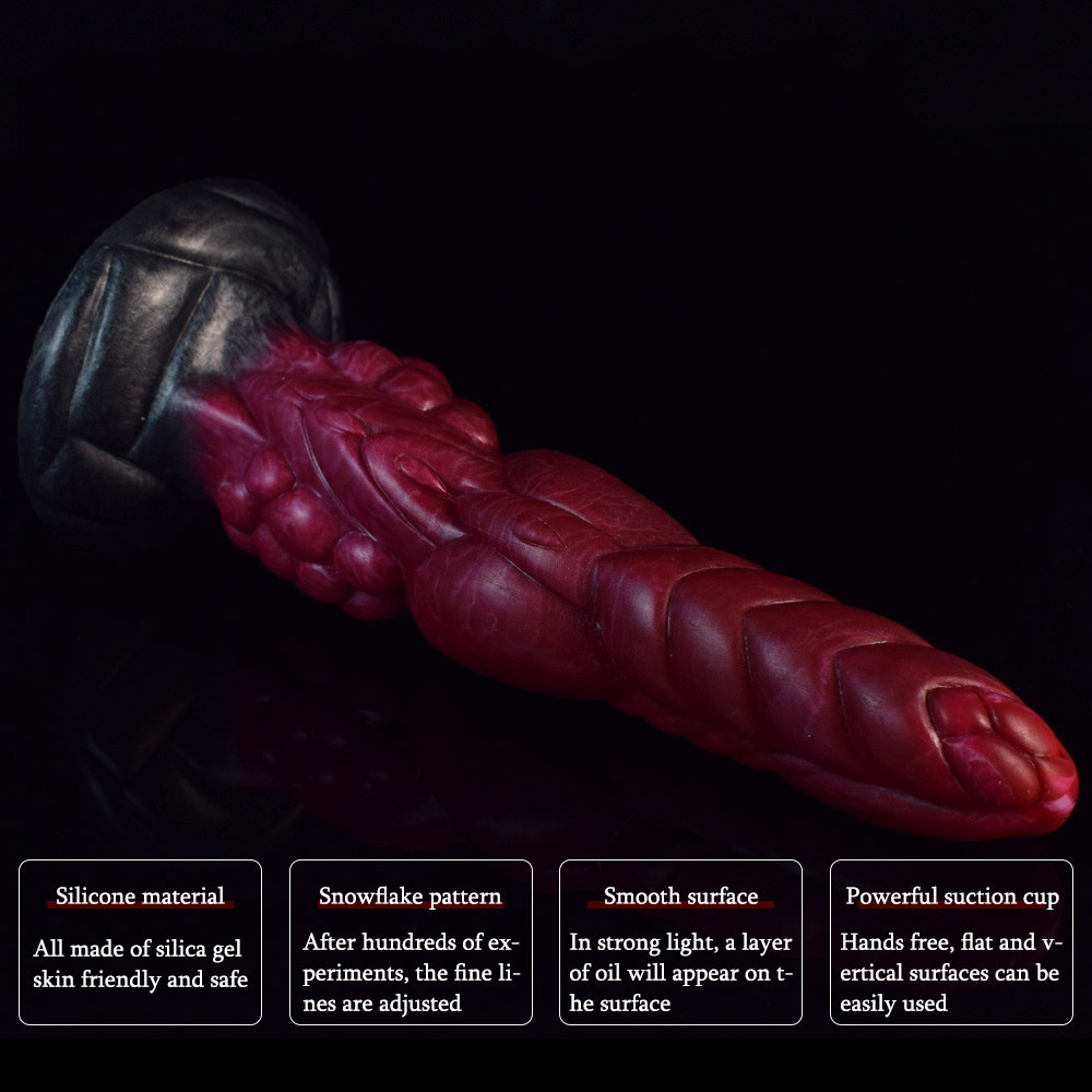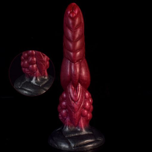 Um dildo de fibra para iniciantes com fetiches animais, por tentáculos e aliens. Com tamanho confortável e de grossura crescente. Com forma musculosa e estriada que parece ser de outro planeta. Bem recomendado para masturbação confortável e prazerosa. Esta textura com relevos selvagens vai te dar muito prazer. Masturbe-se sozinho ou com seu par. Explore com força.