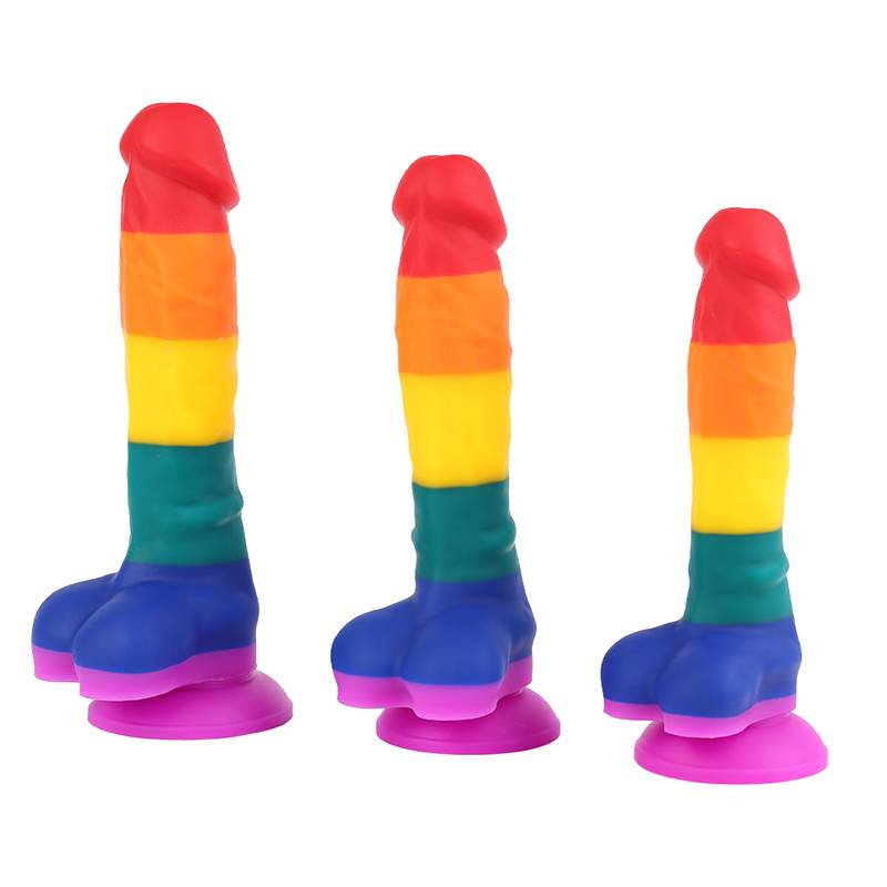 Pênis Realístico Colorido Estilo Pirulito / LGBT Feito em Silicone com Escroto e Base com Ventosa