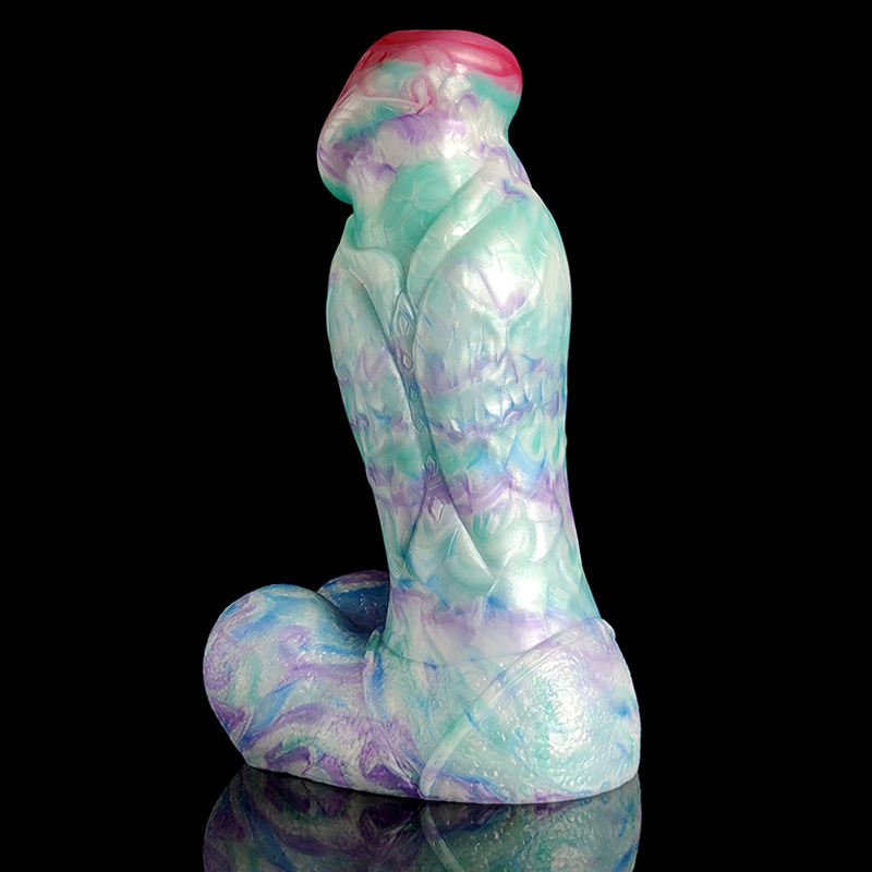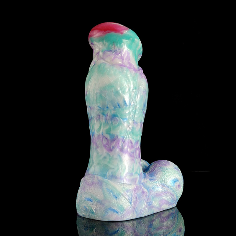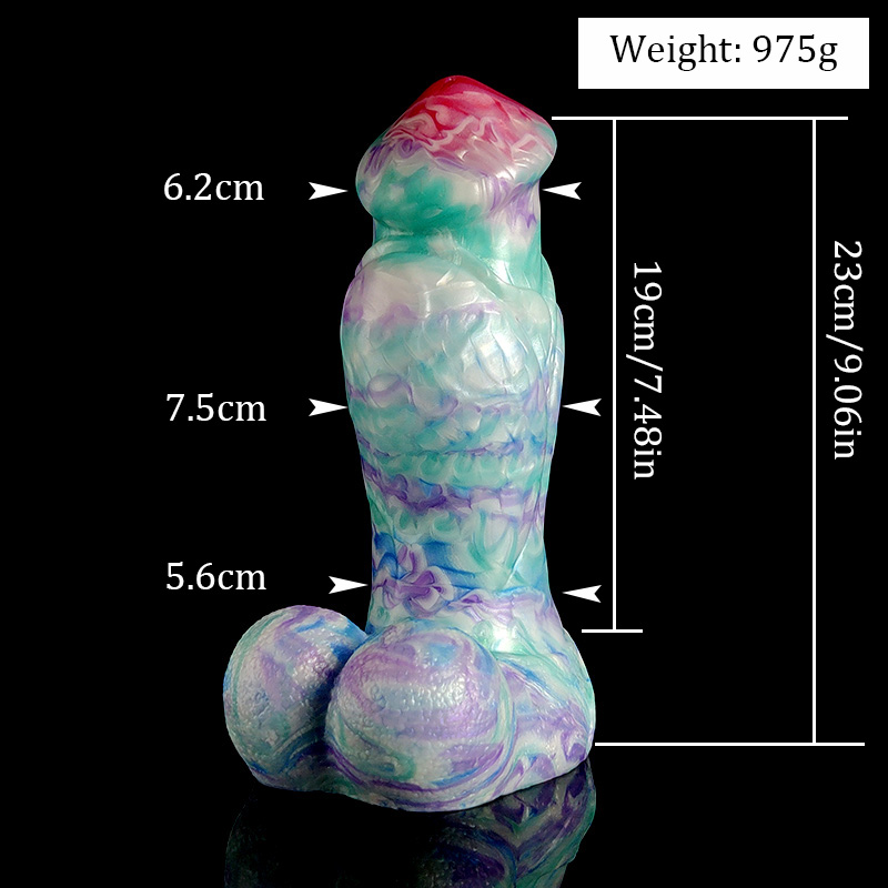 Dildo com forma simples de um cogumelo bem grosso. A glande é bem destacado e com uma pequena depressão seguida de um alargamento do corpo maior que a cabeça.