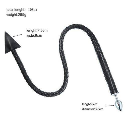 Cauda do diabo é um plug anal com um chicote de tira de couro trançado para uma cauda! Então você pode levar suas aventuras sexuais para um lugar novo impertinente e pecaminoso. O plug estreito tem uma ponta afilada e é feito de alumínio liso para a inserção fácil.