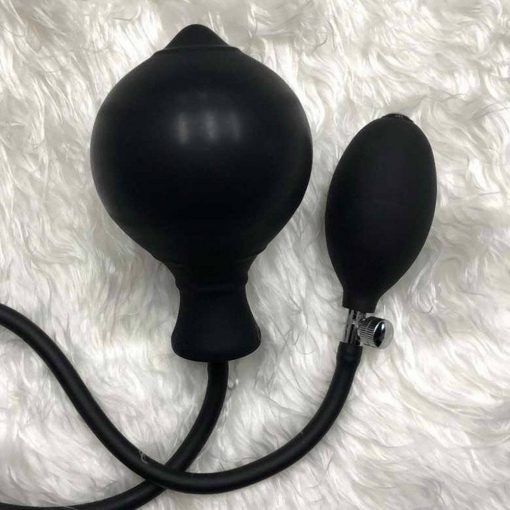 Para inflar o plug, certifique-se que a válvula do manguito está fechada para não sair o ar, basta bombear a pera na base do plug anal e inflar o ar pra dentro.