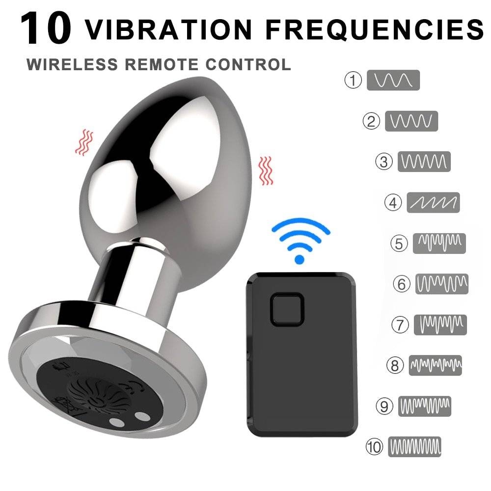 Plug anal e vibrador de aço inoxidável, controlado por controle remoto.