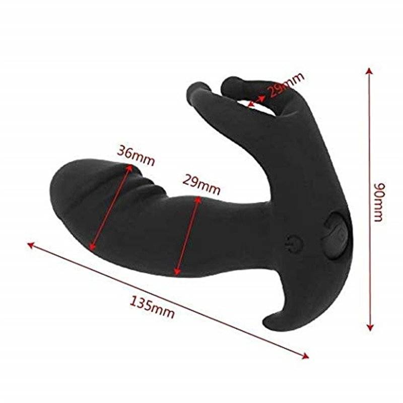 Além das medidas proporcionadas pelo produto, o vibrador bullet pode ser facilmente desencaixado e usado individualmente. O formato do plug permite o contato com o clitóris e ânus.