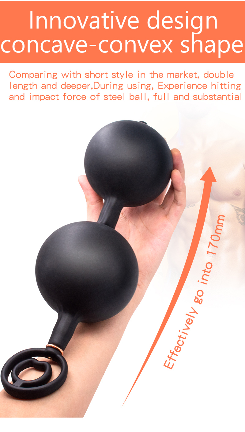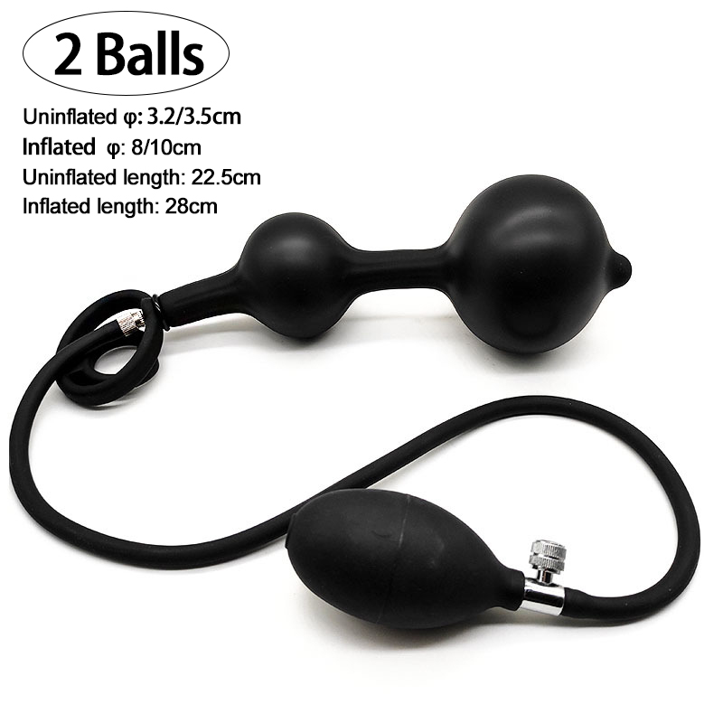 2 modelos de plugs infláveis com formatos simples que formam duas bolas infladas quando cheios. Após estarem cheias, as esferas de metal ficarão livres para se chocarem com as paredes do plug dentro de você. Cada movimento feito vai proporcionar sensações diferentes. Indicado tanto para homens quanto para mulheres que querem exercitar ou praticar experiencias anais.