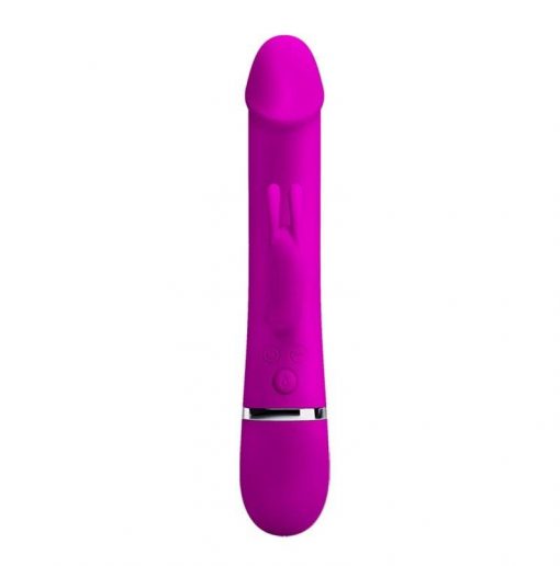 Revestido em silicone, com massageador clitoriano e pequeno reservatório para fluidos.