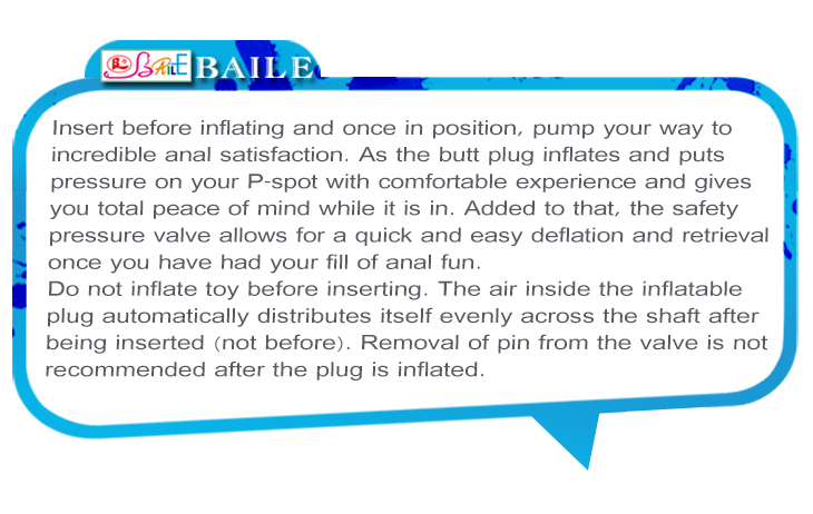 Modelo de plug inflável com formato simples que forma uma grande elipse inflada quando cheio. Após estar cheio, a esfera de metal ficará livre para se chocar com as paredes do plug, dentro de você. Cada movimento feito vai proporcionar sensações diferentes. Indicado tanto para homens quanto para mulheres que querem exercitar ou praticar experiencias anais.