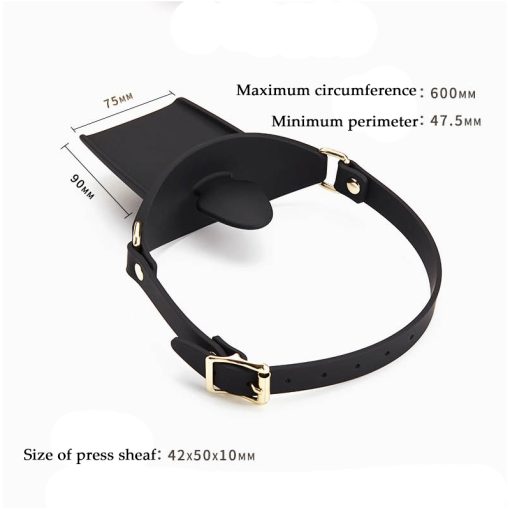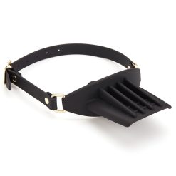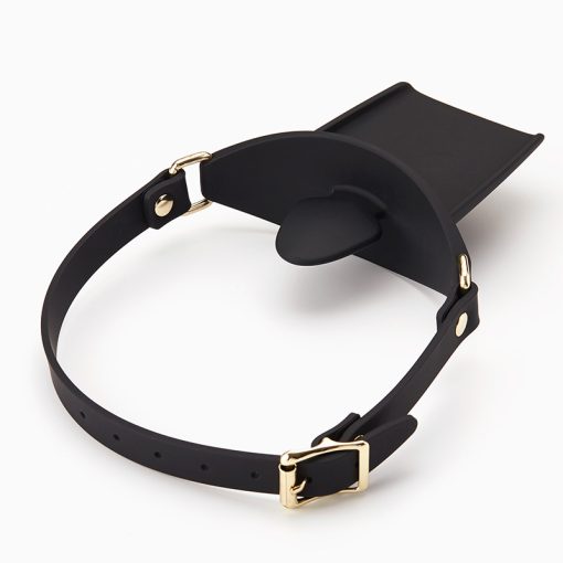 Máscara e mordaça com bandeja para suporte. Para fetiches e fantasias de submissão. Item feito com silicone macio e emborrachado. Possui fivelas e partes metálicas douradas, que são um ar luxuoso para o seu suporte favorito.