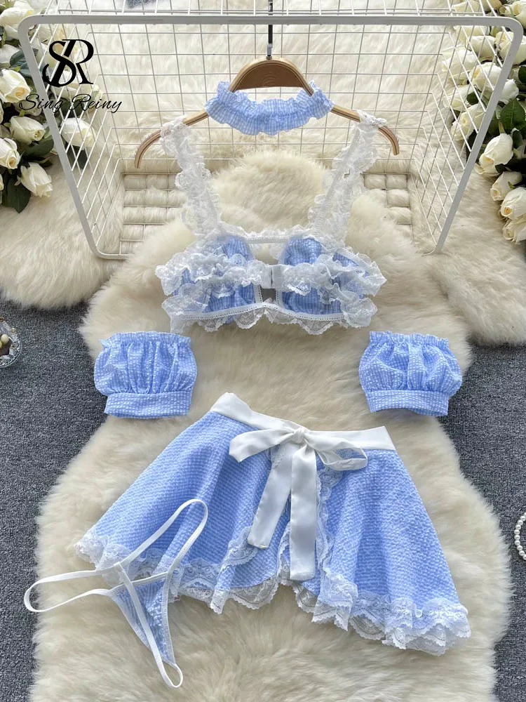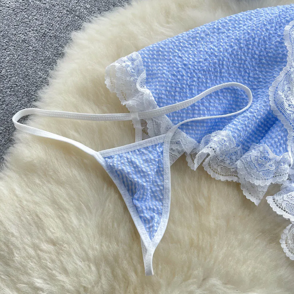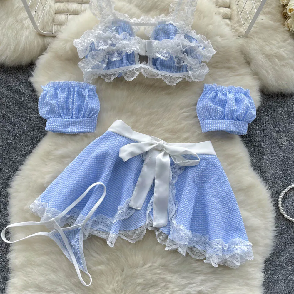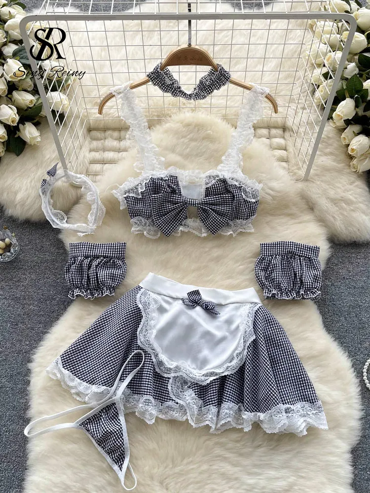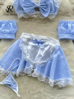 SinGreinY-Conjunto Vestido Renda Cosplay Empregada: a escolha perfeita para quem deseja brincar com o imaginário da submissão com estilo, charme e muita sensualidade. Composto por vestido curto em renda transparente, detalhes delicados e acessórios temáticos, como avental e tiara, essa fantasia realça as curvas e desperta desejos.