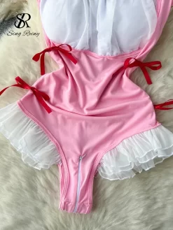SINGREINY Fantasia Body Virilha Cavada com Zíper Sexy Lingerie