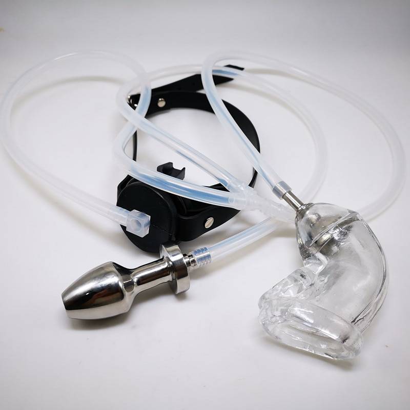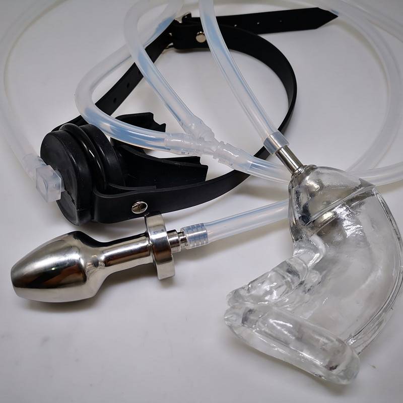 Bdsm sistema de irrigação penile bainha fluxo para o ânus plug e entrada boca dispositivo de castidade galo gaiola sexo brinquedos escravidão sexual irritação homem gay