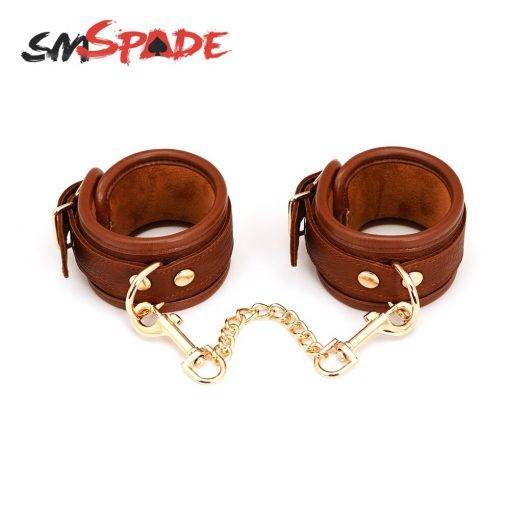 * Punhos de pulso de couro marrom de luxo para jogos de restrição elegantes