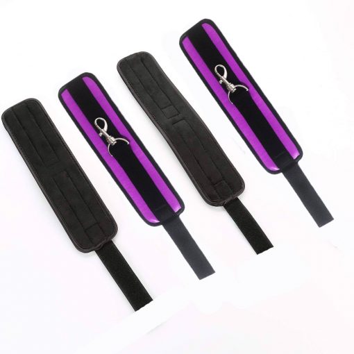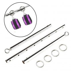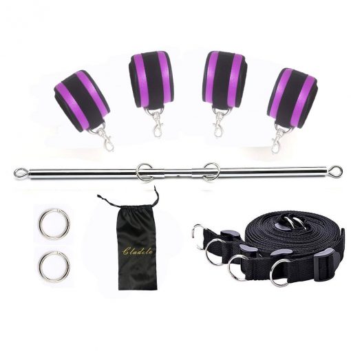 Conjunto ideal para amarrações na cama ou fora dela, com uma barra de aço ajustável que tem 4 argolar. Acompanha grilhões acolchoados e 4 correias de nylon.