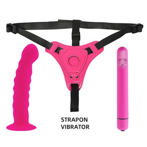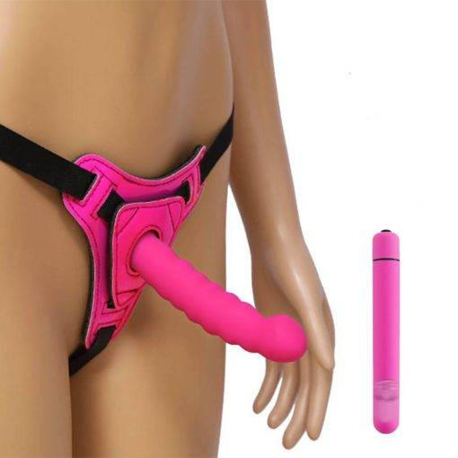 Conjunto de Cinta Peniana Feminina com Dildo em Silicone Líquido e Vibrador Bullet
