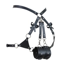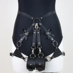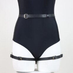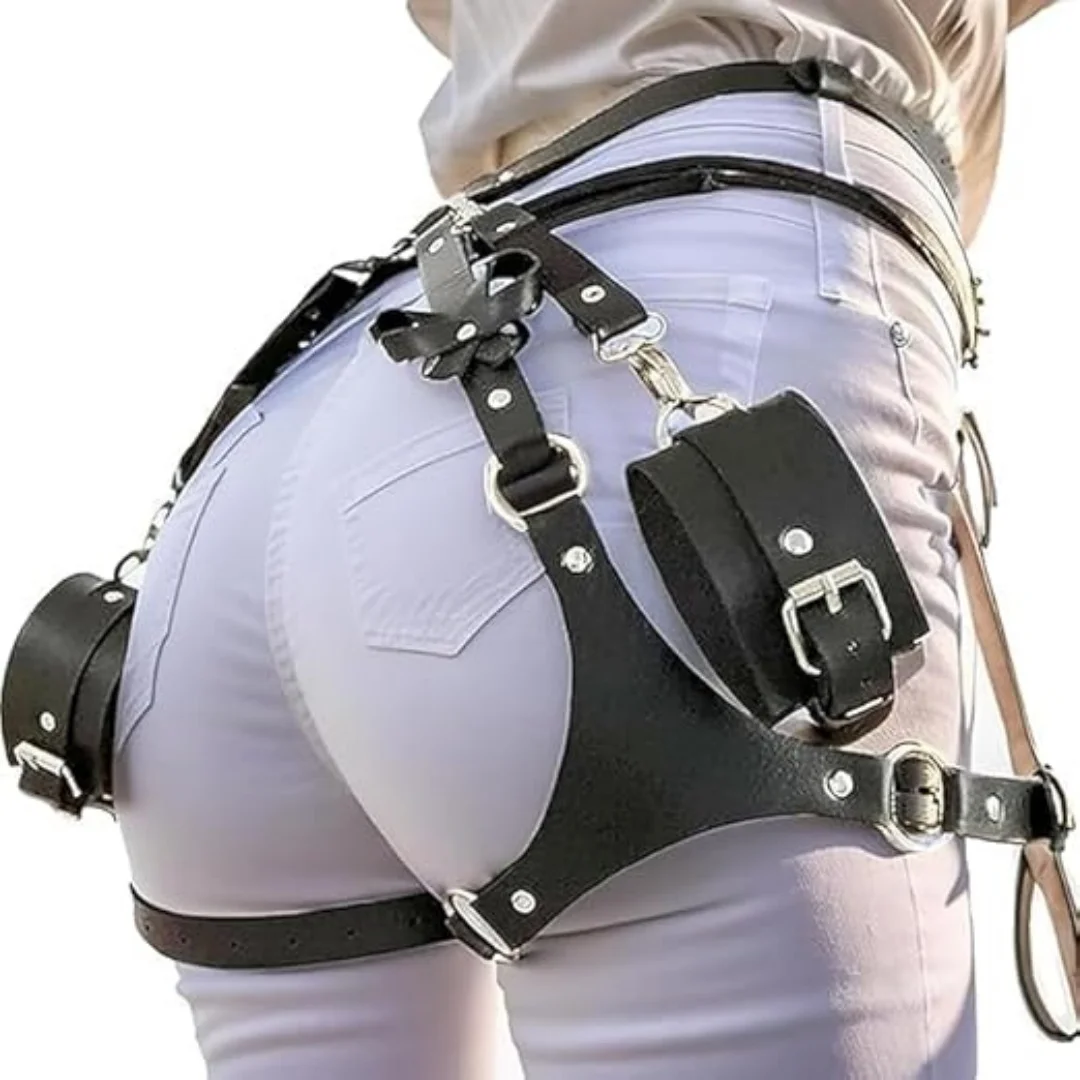 Com design marcante e ajuste ao corpo, o suspensório com algemas em couro e cinta liga é um acessório que combina estilo, atitude e versatilidade na composição de looks e momentos especiais.