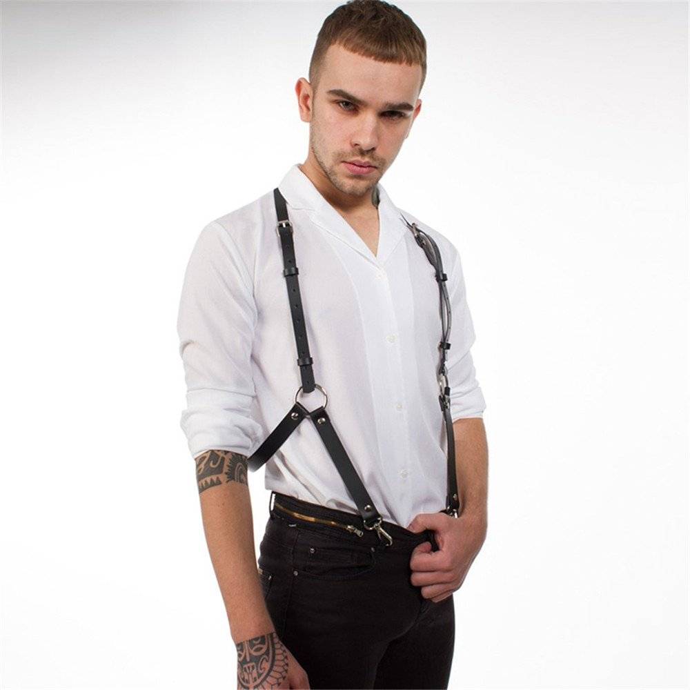 Suspensório Masculino Estilo Harness de Couro Vestuário