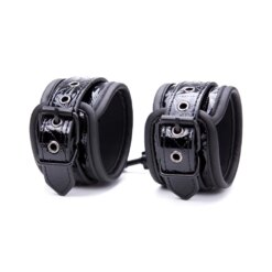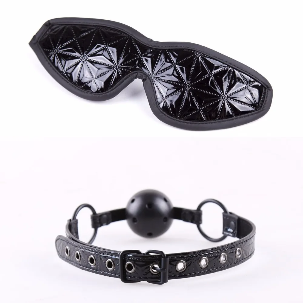 O kit acompanha venda para os olhos, mordaça, coleira com guia, algemas para pulsos e tornozelos, além de paddle para estímulos, oferecendo múltiplas possibilidades de uso em uma única composição.