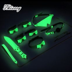 São até 9 itens inclusos neste pacote com ar luxuoso e belo de couro, com metais dourados e que brilham no escuro. Um dos conjuntos mais legais para brincadeiras e atividades no escuro. São fluorescentes nas cores verdes ou rosas. Com o uso adequado das ferramentas e do prazer correto concedido, o seu par vai brilhar e desejar mais.