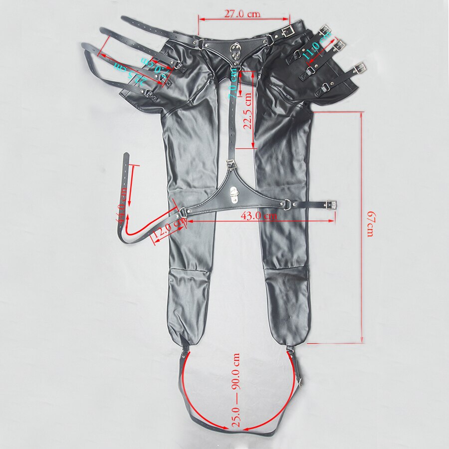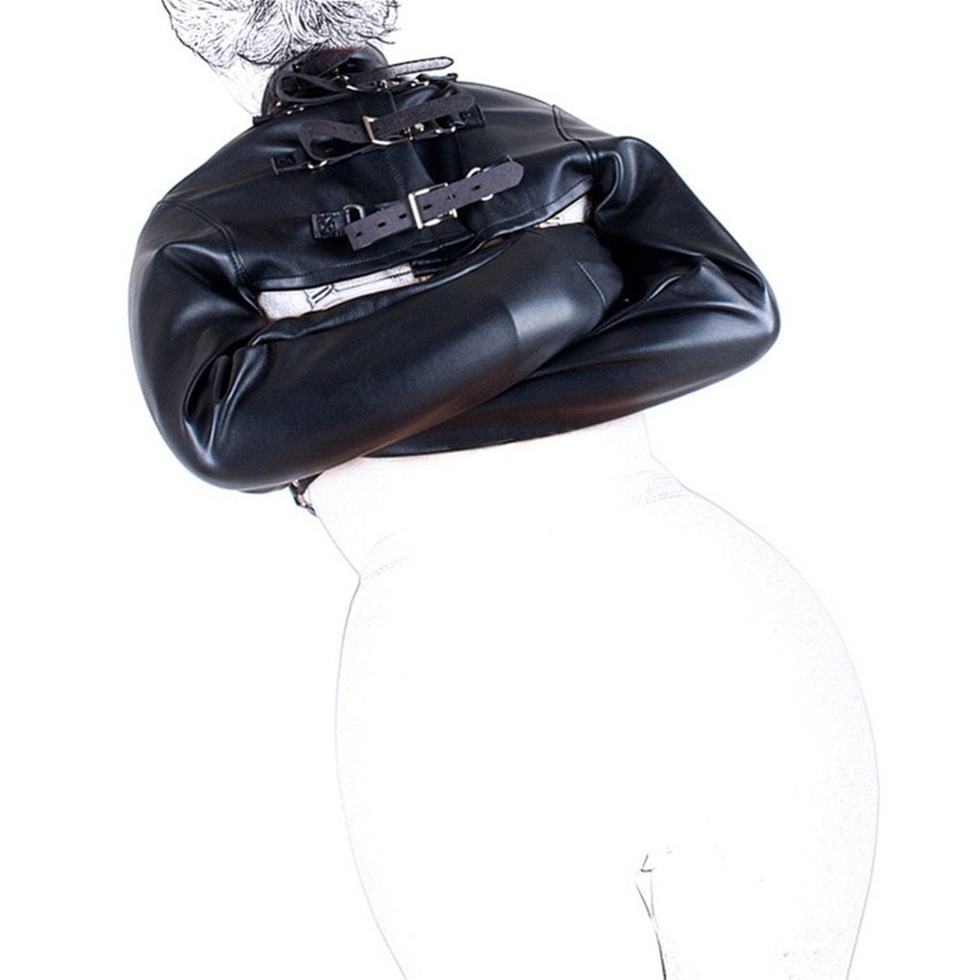 Um extenso top com mangas compridas. Semelhante a uma camisa de força, para reter os braços na frente ou atrás do corpo. As mangas do item não possuem aberturas. Com regulagens precisas e firmes por fivelas proporcionalmente grossas. Apimente sua relação com estes dispositivos. Restringir os movimentos e aumentar sua liberdade é excitante. Seu par também vai gostar, sendo submisso ou não.