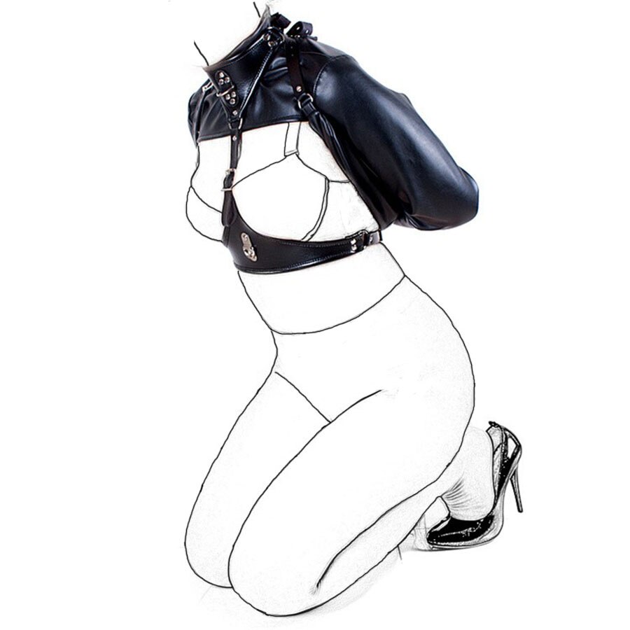 A longa manga de couro limita os movimentos de forma firme, mantendo os braços atrelados aos ombros e abdome, praticamente sempre atrás ou na dianteira do corpo do seu par. Aproveite a vista de belos seios a mostra e livres para que você brinque com eles. Muitas pessoas gostam de serem dominadas nestas posições.