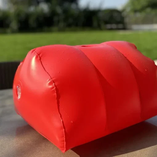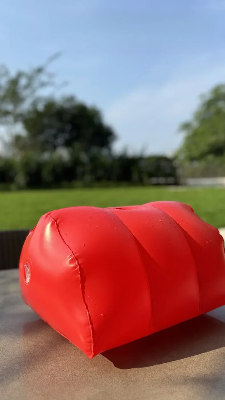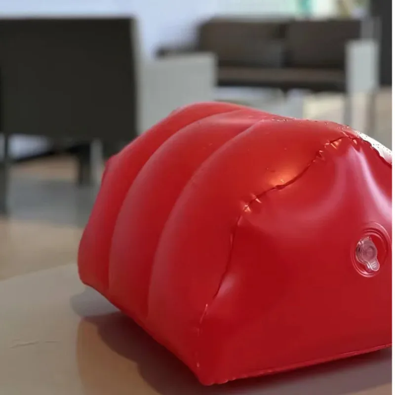 Revestido em couro sintético resistente e fácil de limpar, une estética fetichista com funcionalidade. Pode ser inflado e esvaziado rapidamente, sendo perfeito para levar em viagens ou manter à disposição com discrição.