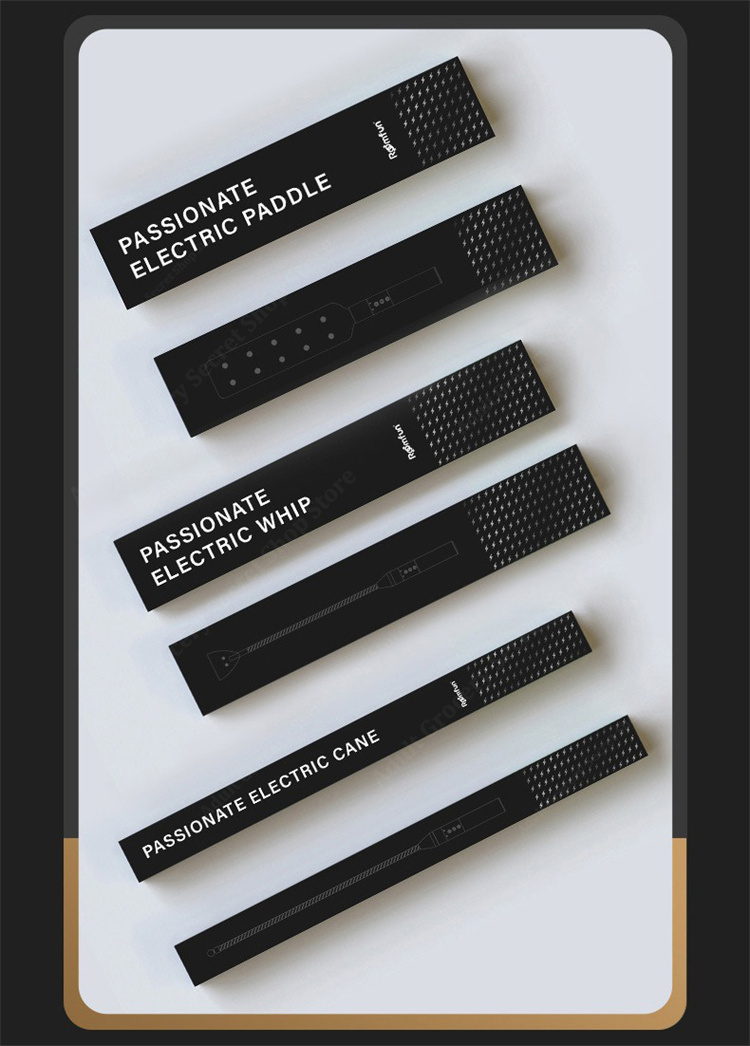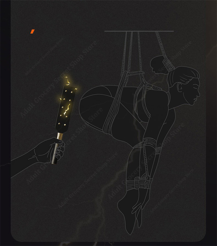 3 modelos de remos, palmatórias e chicote com pontos de descarga elétrica. Fetiche chocante.