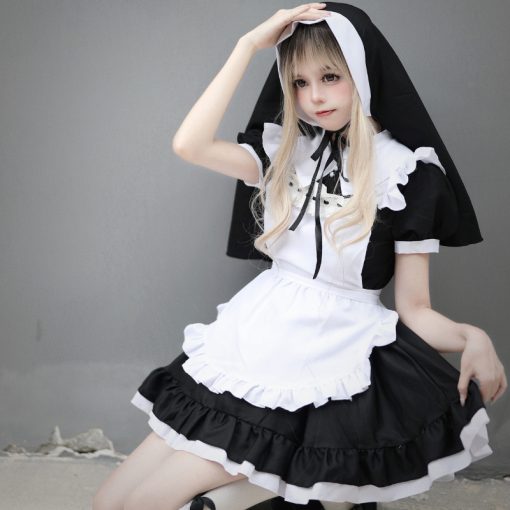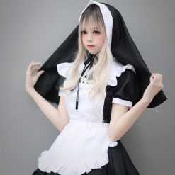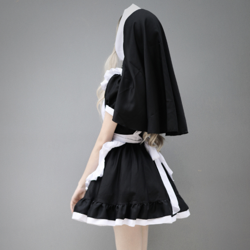 Apimente sua relação com este vestido estilo “hábito” (Sim. Este é o nome da roupa das freiras) justo e curto. Em conjunto sexy e gracioso com temática suave e muito “religiosa”. Preto e branco e rico em detalhes, que vai trazer a fantasia e o fetiche realizados para você. Possui laço na região do abdome para fechamento do vestido. Saia curta com costuras e detalhes babados. Excelente fantasia de freira sexy.