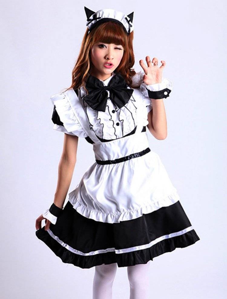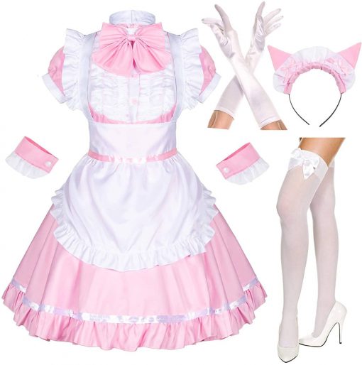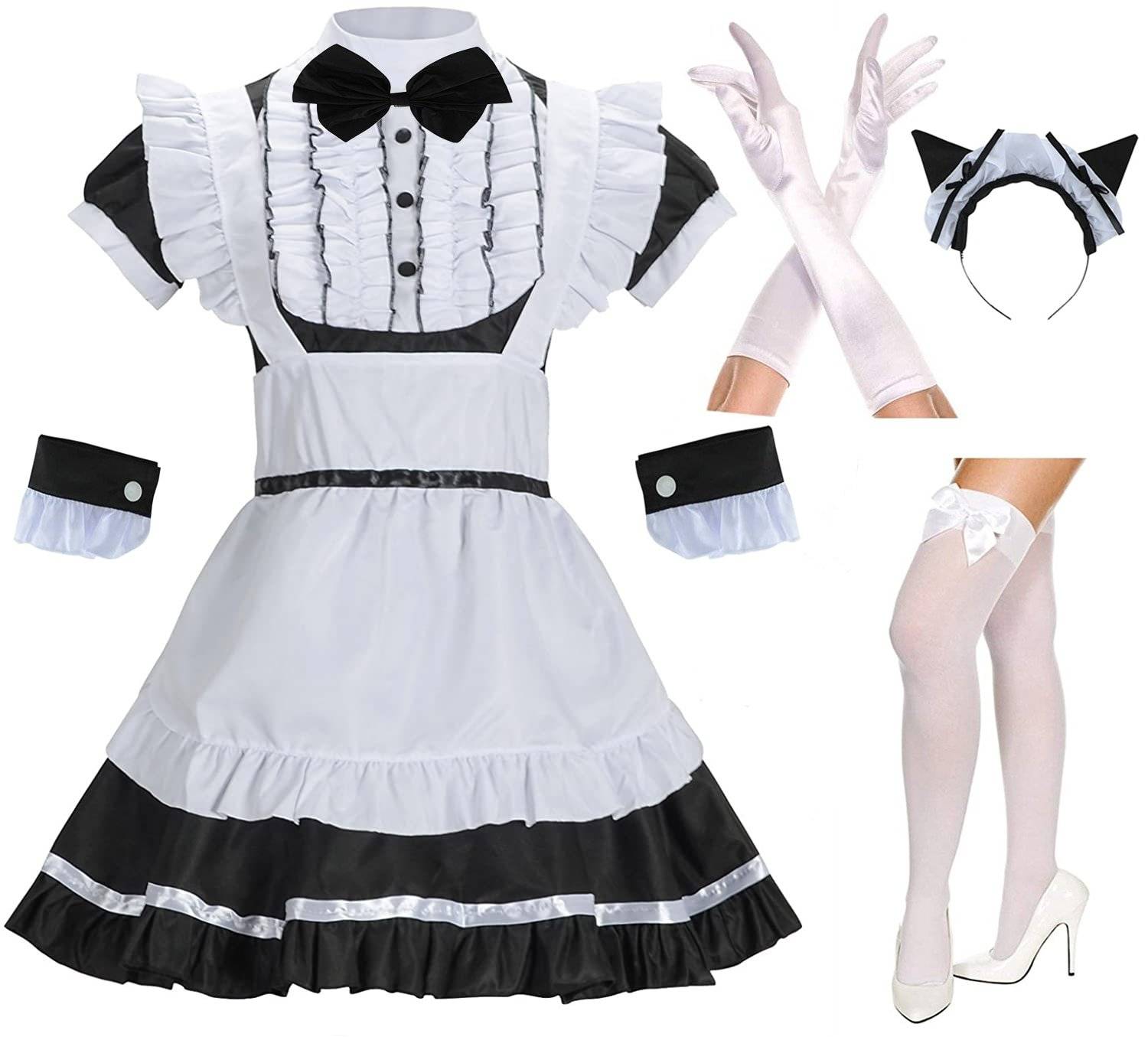 Você pode escolher o pedido completo com luvas, meias-calças, mangas, tiaras e laços para as pernas. Trajes completos para fantasias, cosplay, fetiches de donzelas ou empregadas.