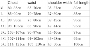M: peito 85CM, cintura 70CM, largura do ombro 37CM, comprimento 80CM