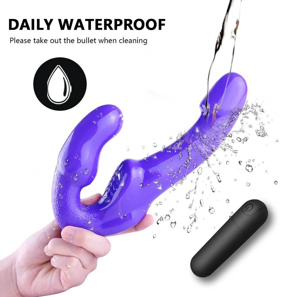 Vibração através do vibrador bullet que é inserido no meio do strapless