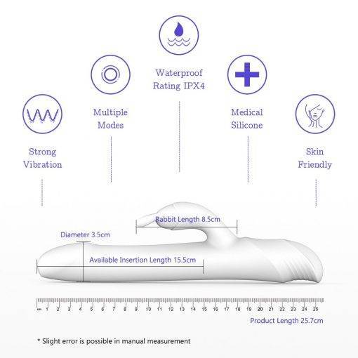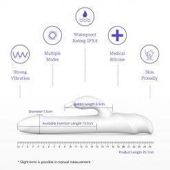 Continue inserindo na vagina e inicie o modo de vibração da orelha de coelho. O clitóris, e o ponto G receberão estimulação ao mesmo tempo. O orgasmo intenso que você nunca experimentou antes vai transbordar.