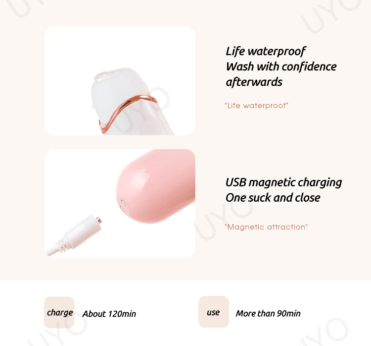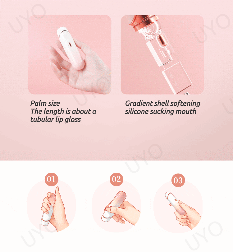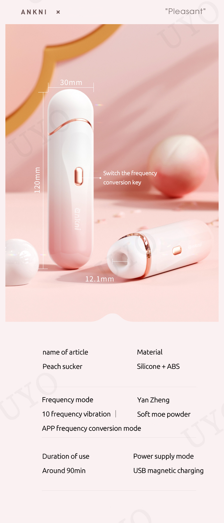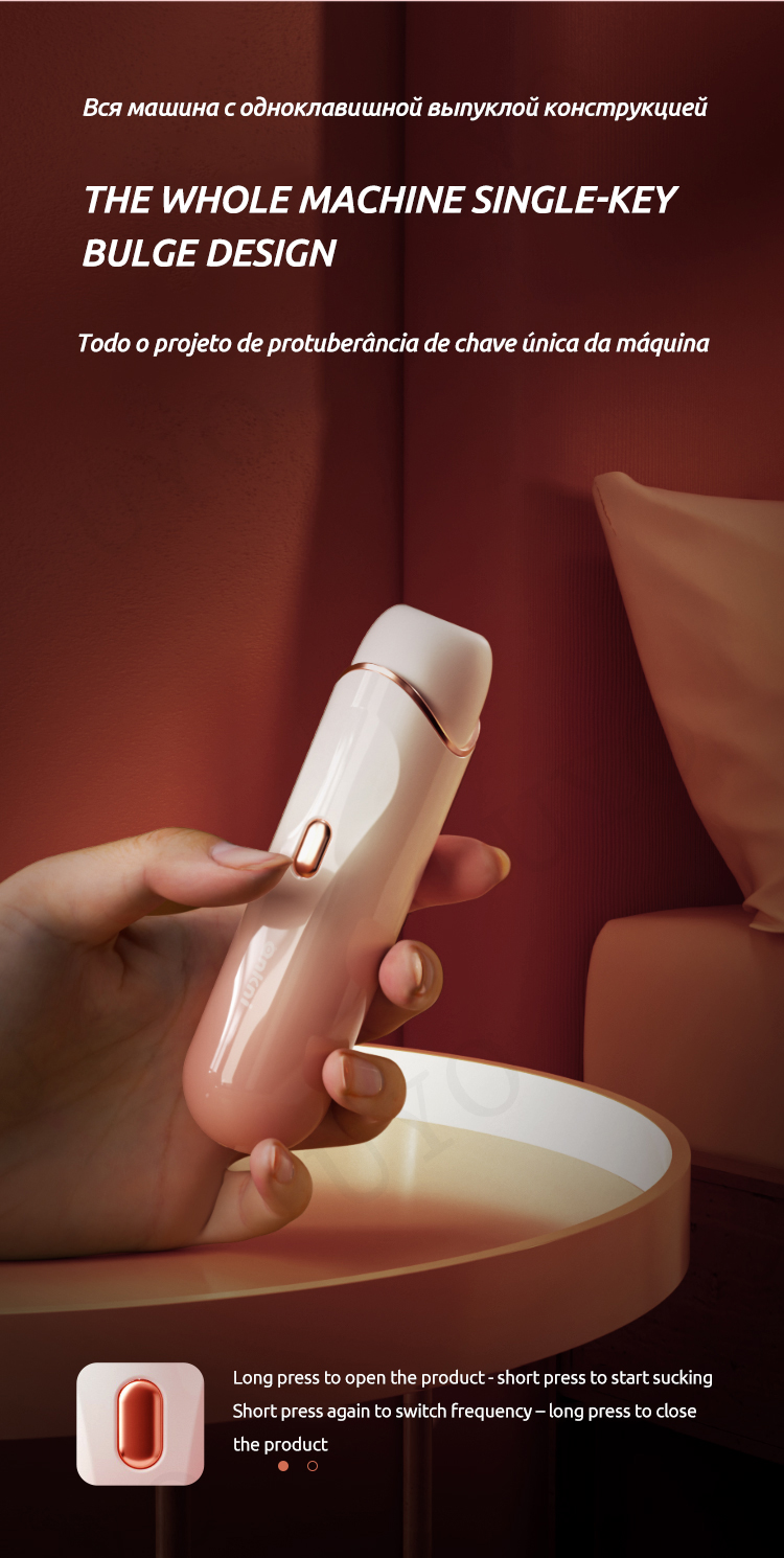 Feito em plástico ABS e silicone macio, com superfície lisa e com conector para carregamento embutido. São 12 cm de altura total. Possui 1,2 cm de diâmetro interno vazio par o bico sugador. Grossura máxima de 3 cm de diâmetro.