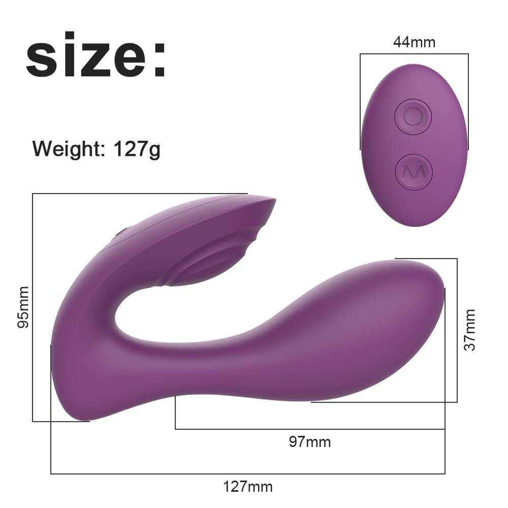 A vibrador é um brinquedo impermeável, você (ou seu parceiro) pode controlar remotamente com o controle remoto. A vibração é em forma de u, com uma metade projetada para penetração e a outra metade projetada para estimular seu clitóris.