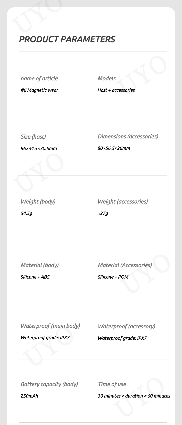 | Features 5 | Soft material |