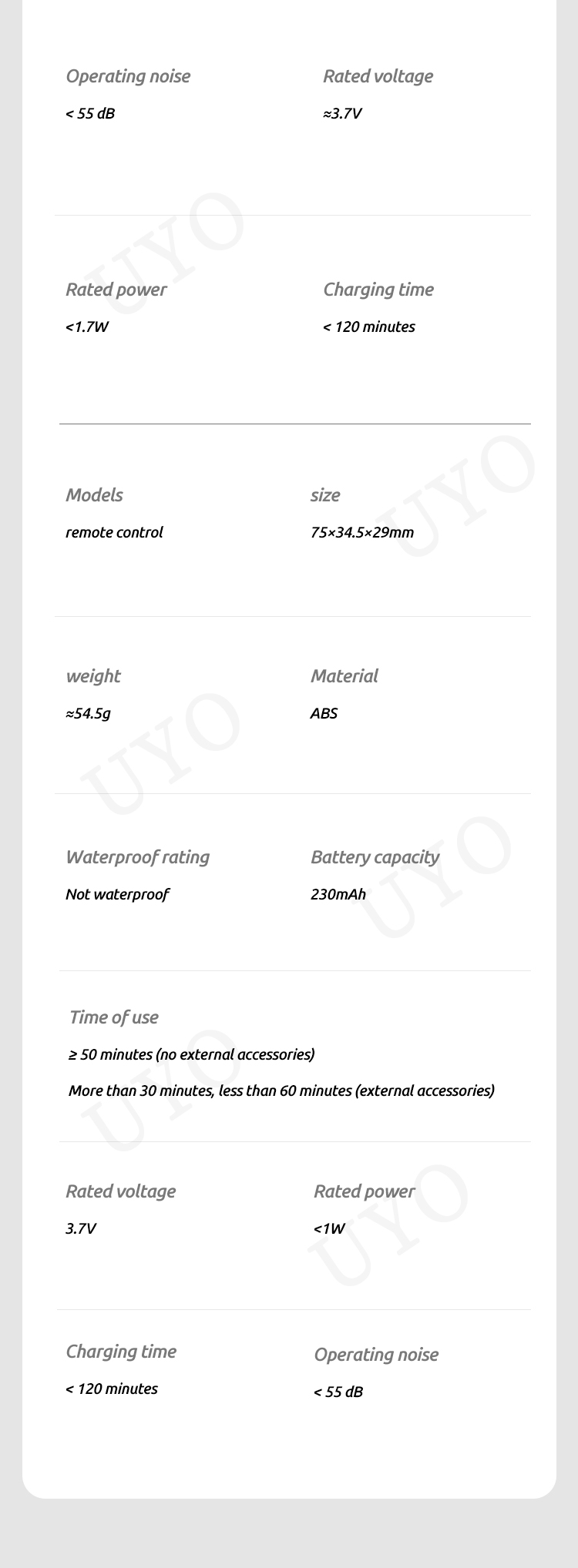 | Features 2 | Remote control |