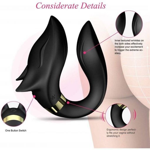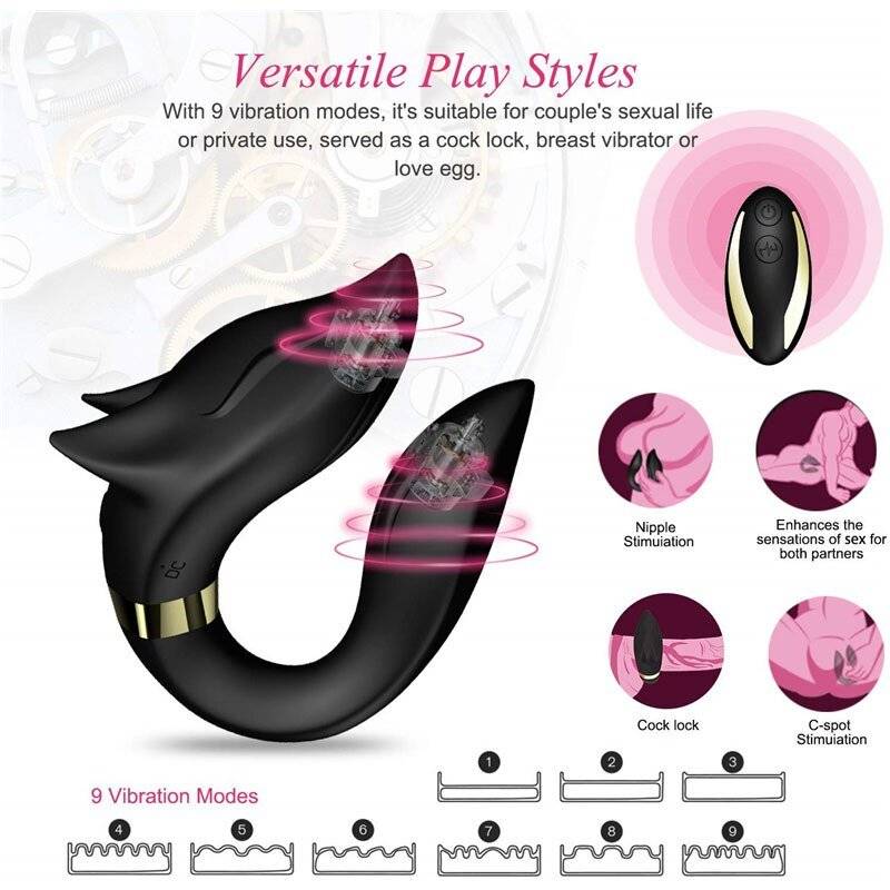 Vibrador em formato de grampo, especial para o clitóris e para o ponto-G. Tem controle remoto e vibra em até 9 frequências diferentes.