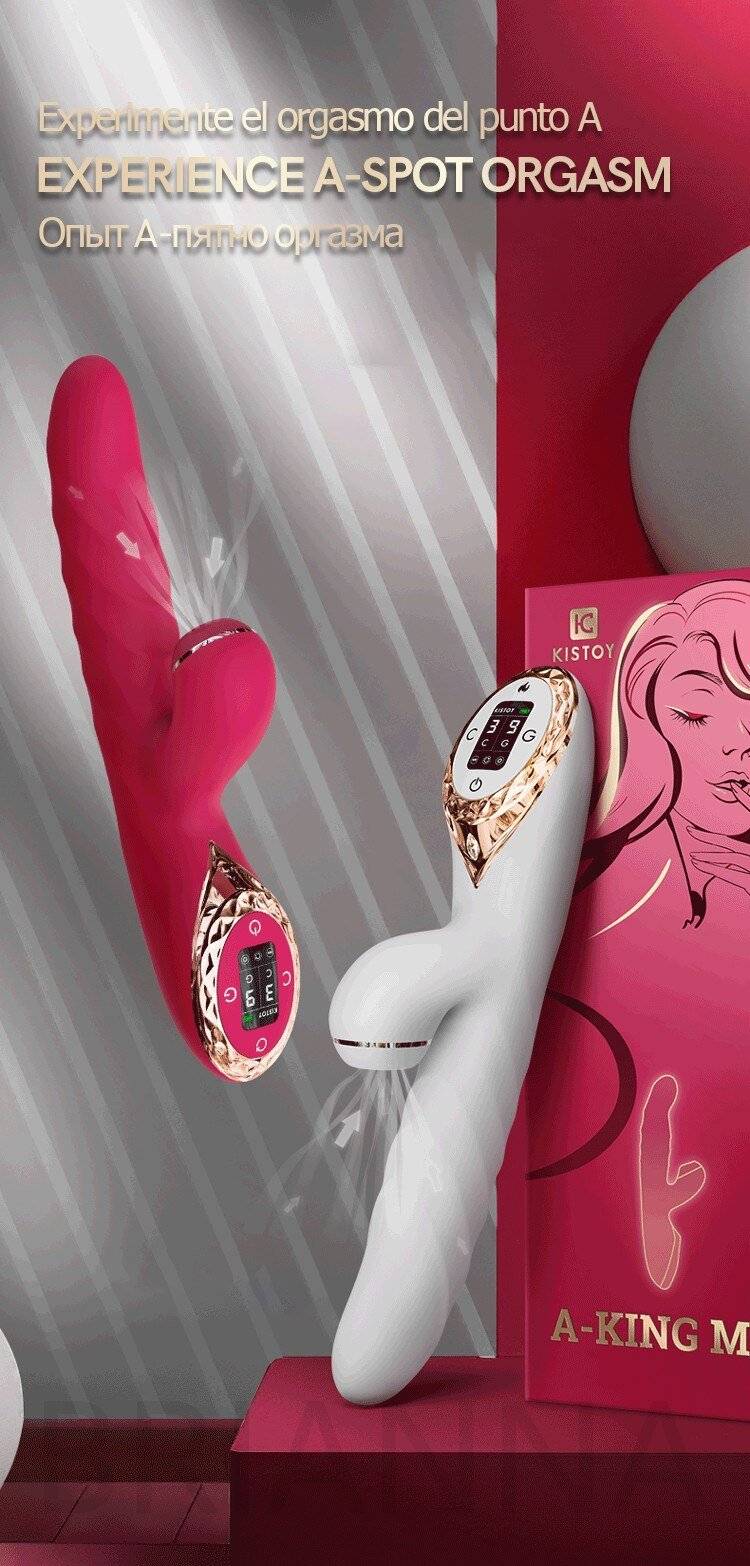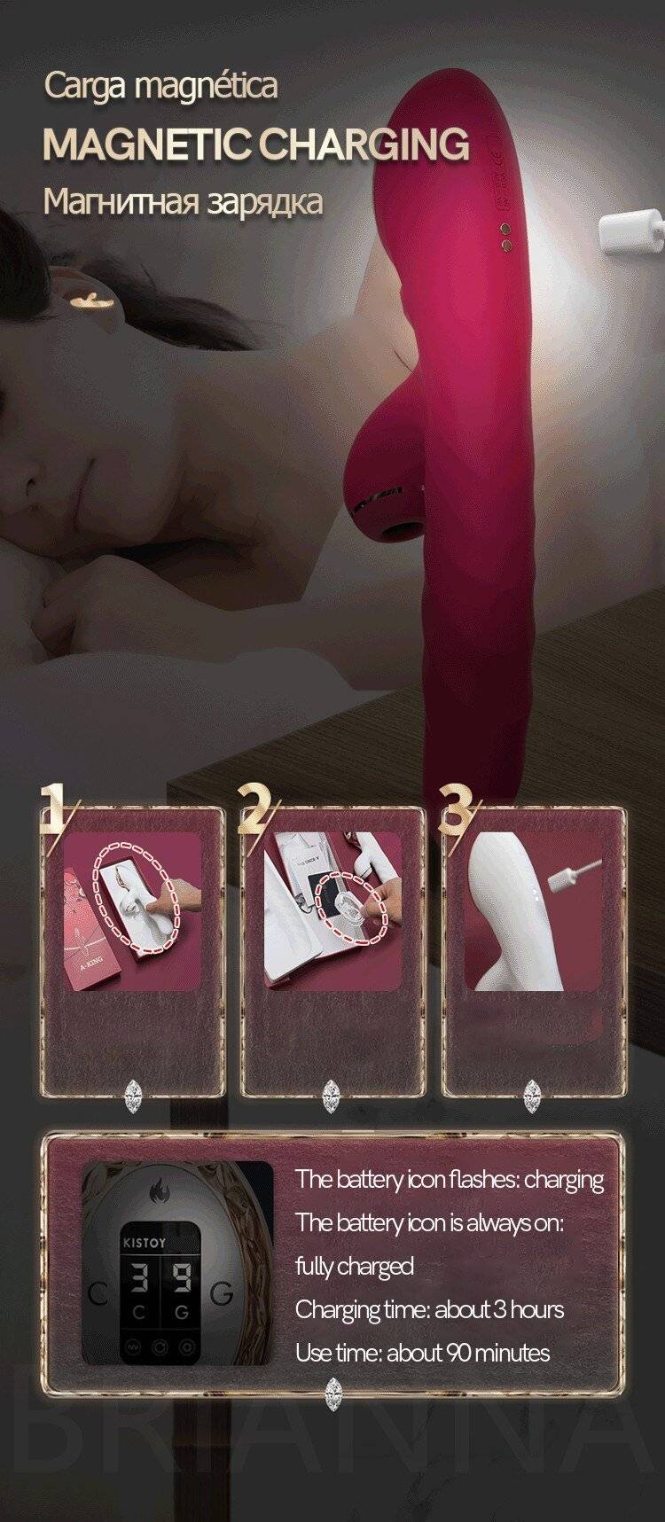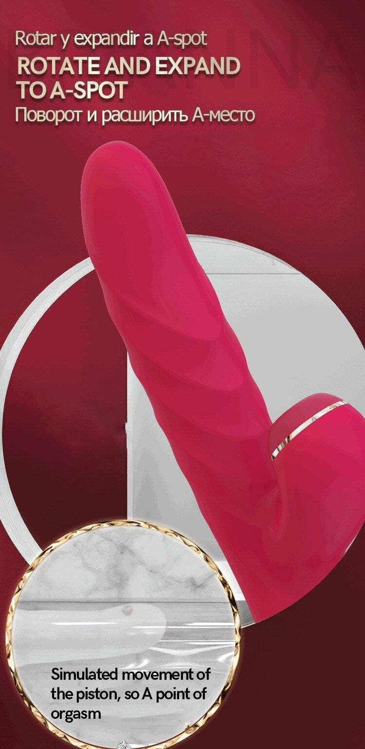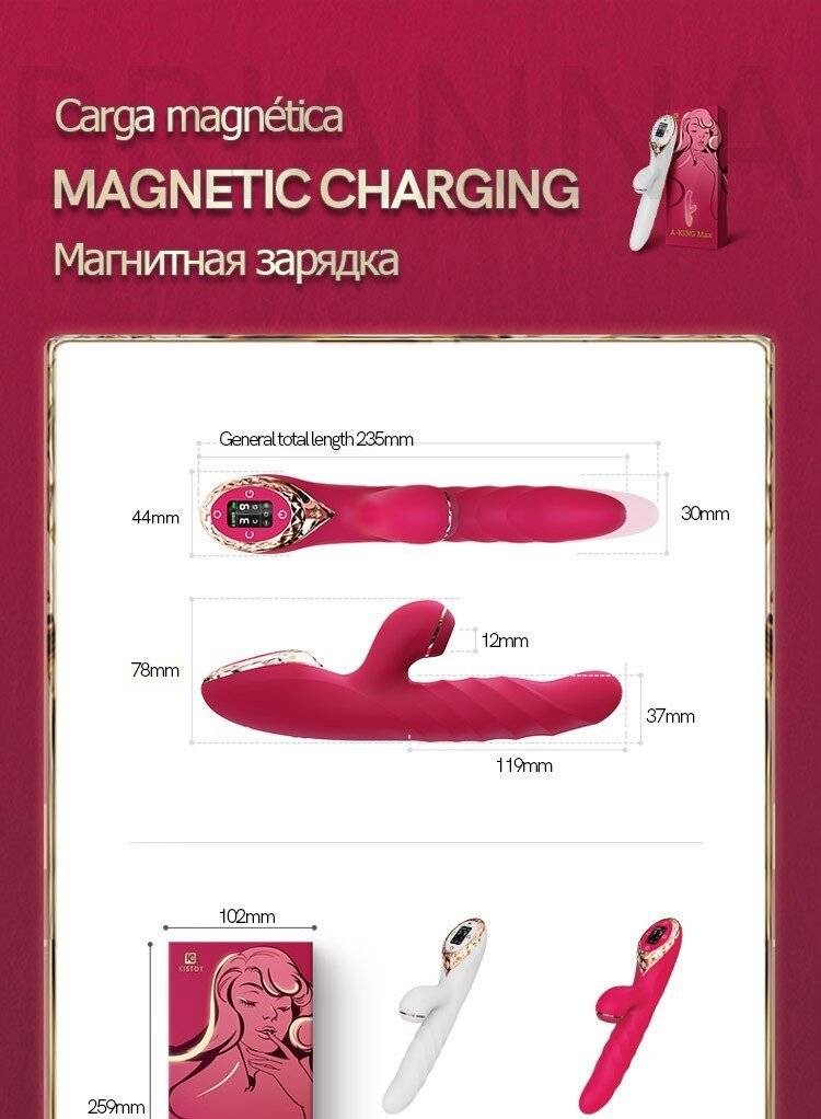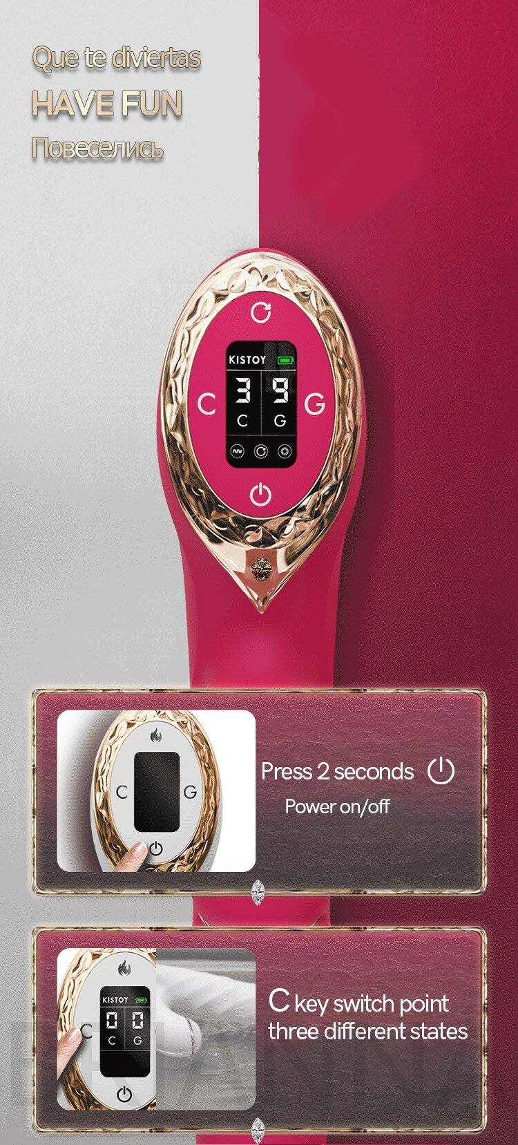 Este vibrador tem display digital, possui função telescópica que modifica seu tamanho, tem função de sucção de clitóris e possui engrenagens que permitem o movimento circular da cabeça principal!